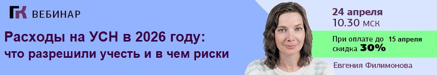 Применяете упрощенку «доходы минус расходы» Слышали, что с 2026 г. перечень расходов при УСН открытый Это хорошо. Но это не означает, что теперь можно списывать все подряд — расходы при УСН со ставкой 15% признаются с учетом «прибыльных» правил. Прямой эфир проведет для вас Евгения Филимонова — ведущий эксперт издательства «Главная книга». У подписчиков журнала «Главная книга» преимущество – участие и просмотр записи бесплатные. 💰 Участие в онлайн-эфире вебинара со скидкой 30% стоит 3202 рубля с НДС, 📅 Вебинар пройдет в прямом эфире: 24 апреля 2026 года, 🔔 Что разберем на вебинаре: как нормы НК для налога на прибыль переложить на упрощенку, какие документы оформить, чтобы снизить риски, к чему чаще всего придираются налоговики. В программе — представительские расходы, компенсации работникам, штрафные санкции, хищение и порча имущества, перенос убытков, нюансы углубленных камералок.